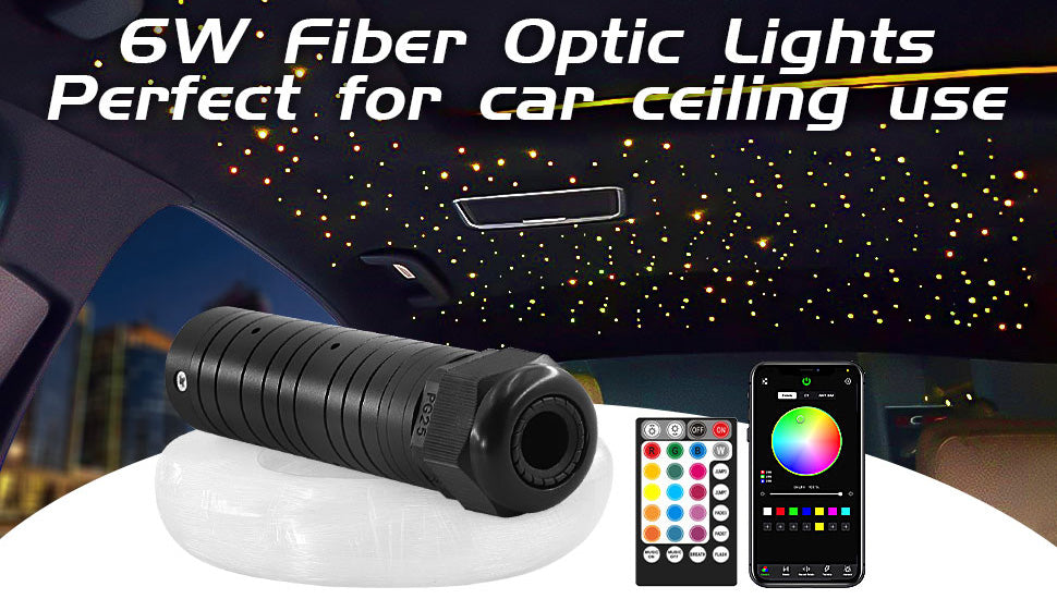 - Music Mode: 6W light source is built-in sound activated, fiber optic strands dancing with the rhythm of music or Ambient sound, suitable for car starlight headliner decoration